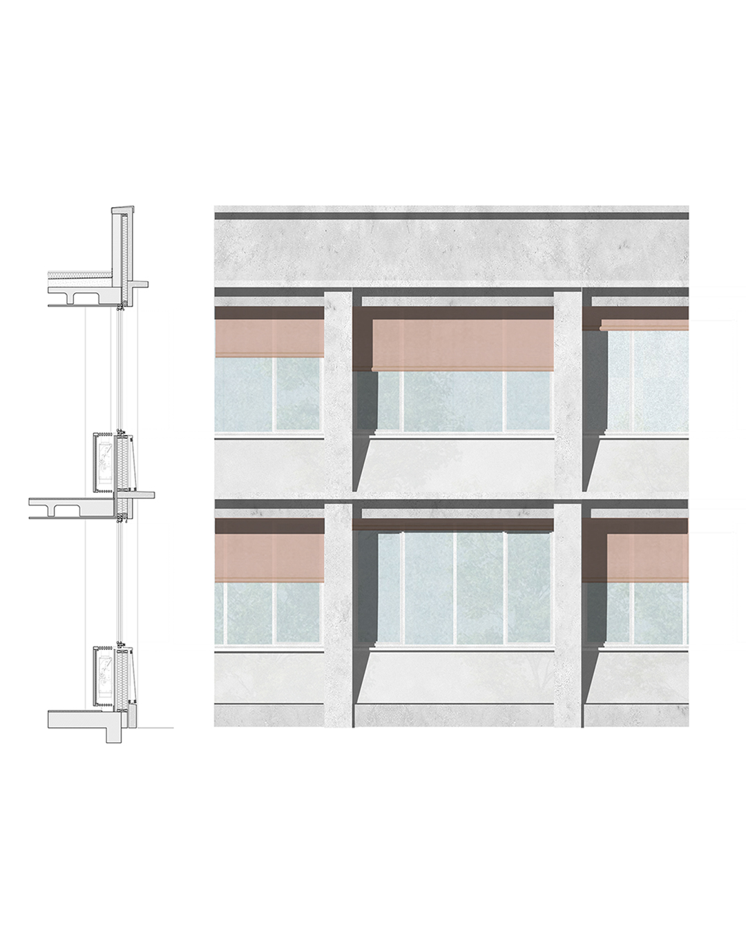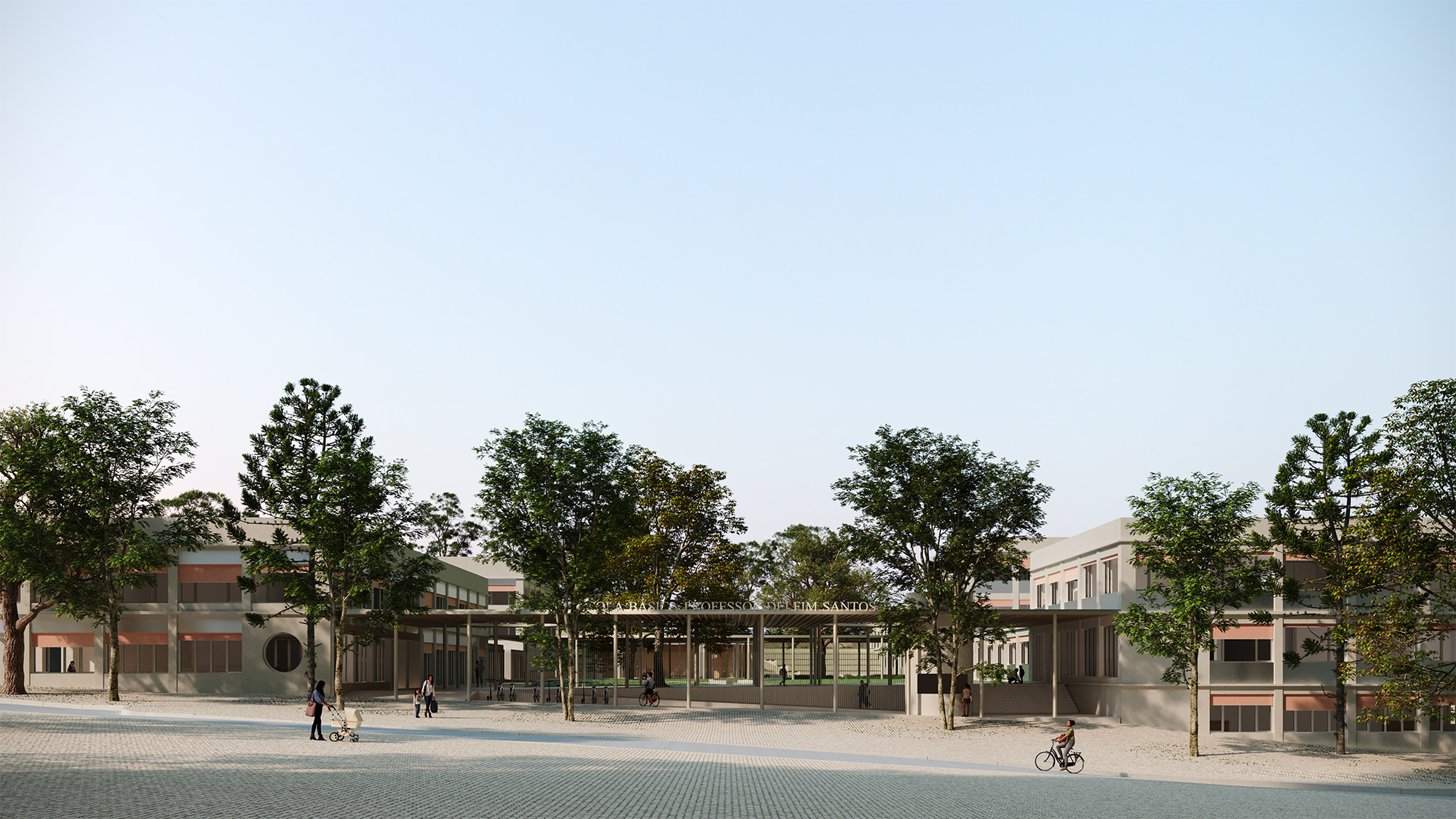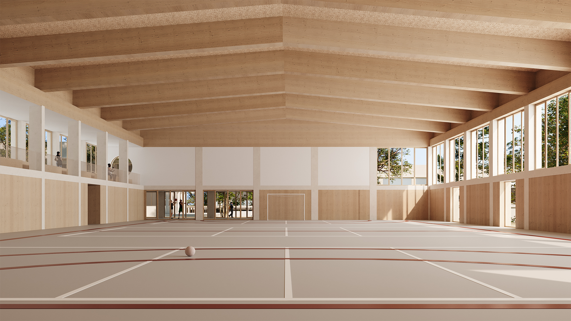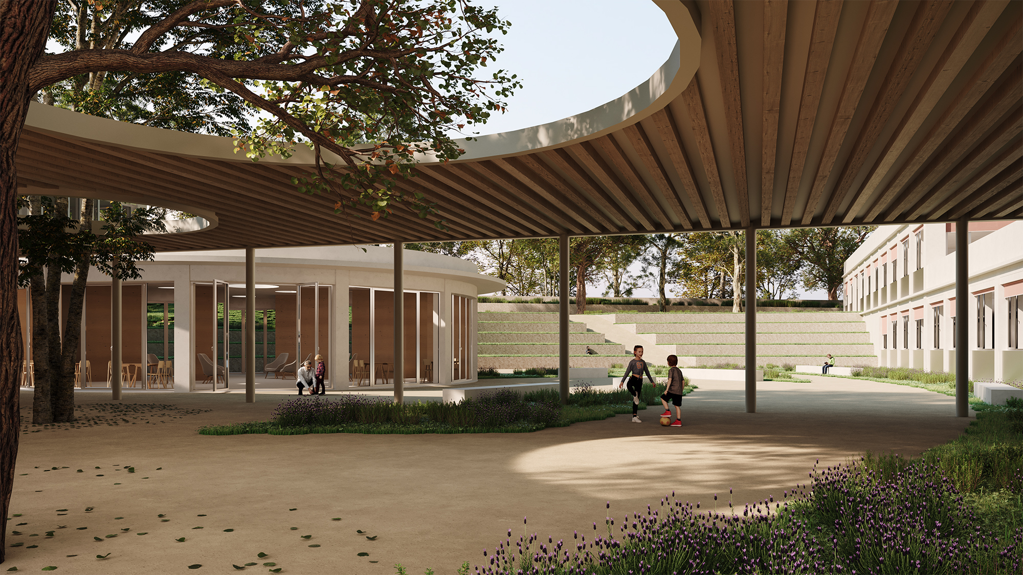 Sur le plan constructif et énergétique, le projet mise sur la valorisation des structures existantes, l’emploi de matériaux à faible empreinte carbone, le renforcement de l’enveloppe, la ventilation naturelle et le recours aux énergies renouvelables. Il en résulte une école plus lisible, accueillante et durable, capable de répondre aux enjeux éducatifs et écologiques du XXIᵉ siècle.